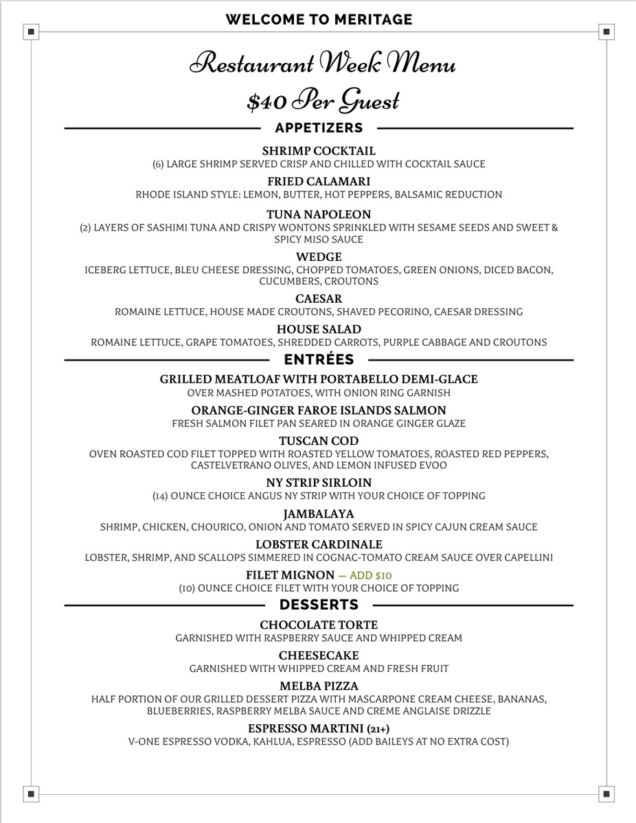 Join us for Providence Restaurant Week from Sunday through Thursday starting 1/25 -2/8